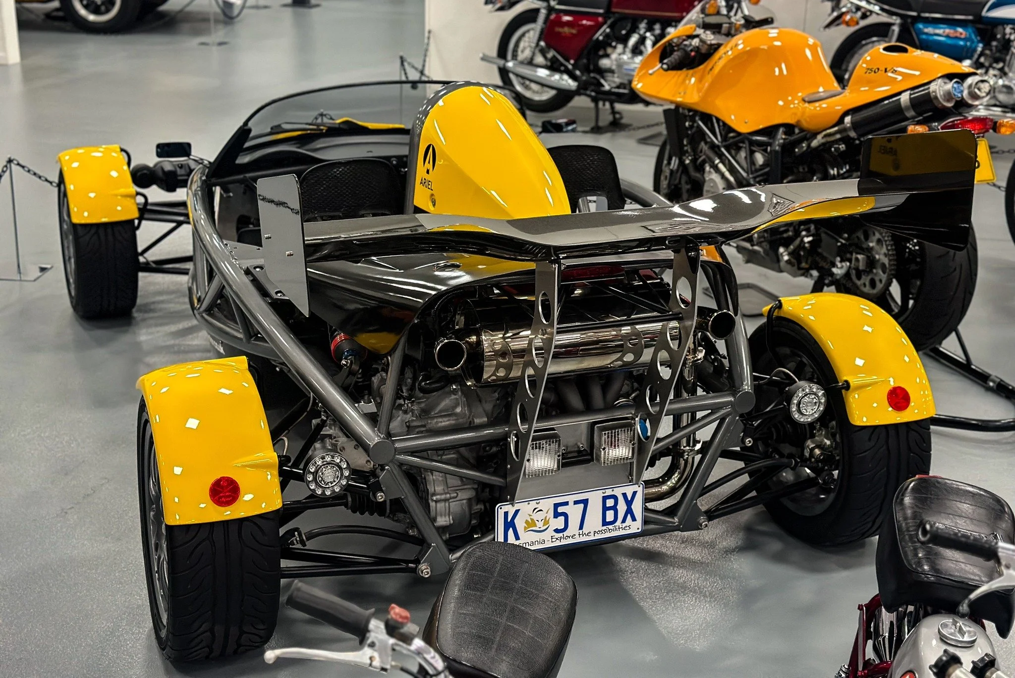 There are few modern cars as thrilling and stripped-down as the Ariel Atom! First designed by clever university student Niki Smart in 1999, the Ariel Atom is still being made today in the UK and even the USA. Over the years, there have been eight amazing versions, with the most powerful being the jaw-dropping Atom ‘500,’ which packs a whopping 500 horsepower and a roaring 3.0-litre V8 engine! What makes the Atom so special is its unique exoskeleton design—it doesn’t have a typical body like most cars. Instead, it features a lightweight frame that weighs only 462 kg, allowing you to see the inner workings while zooming around corners like a rocket! The Atom on display is powered by the same engine used in the Honda Civic Type R, making it extra exciting, and it’s believed to be the only Ariel Atom that has been road-registered in Australia, making this incredible machine truly one of a kind!