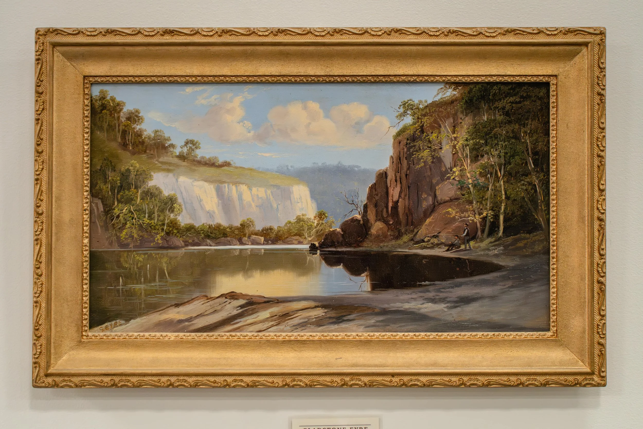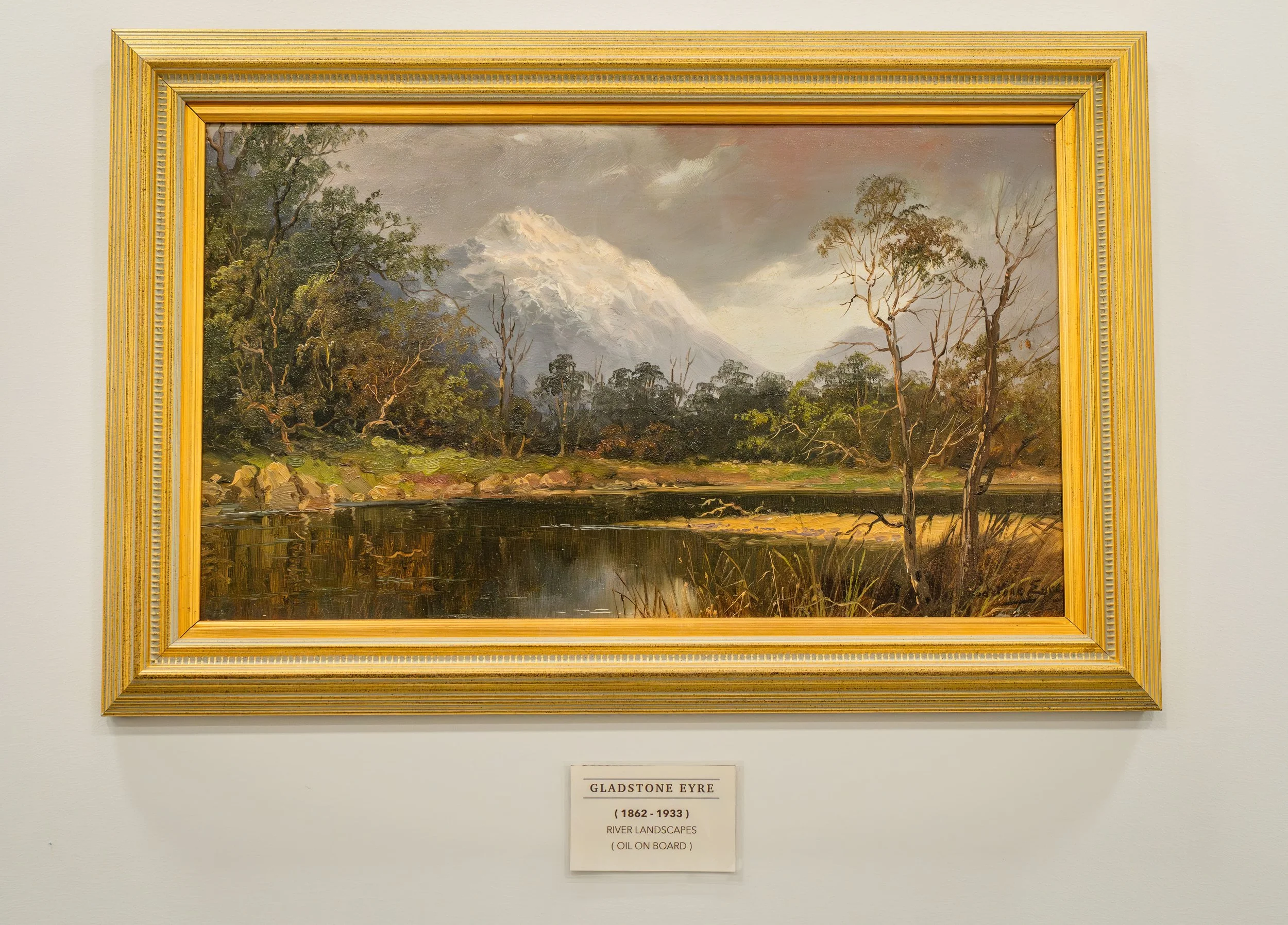 Born in Brunswick, Victoria in 1862, Gladstone Eyre first studied painting under Van den Houten, later moving to Sydney where he resumed studies under Knud Bull. Throughout the 1880s, he established himself as a fine portrait painter. Moving with his family to Launceston in 1891, he commenced work with Richard John Nicholas (1843 - 1910), photographer of St John Street often displaying his paintings in the shopfront of his studio. Throughout the following ten years he painted Land and Seascapes of many Tasmanian locations - (Oils and Watercolours) from both life and photographs, while continuing to render portrait commissions. Eyre also conducted evening classes where drawing, painting and outdoor sketching were taught to students at his St John Street studio, and in 1893 exhibited at the Tasmanian Juvenile Industrial exhibiton in Launceston. Returning to Sydney in 1902, he travelled and continued to paint prolifically in many parts of New South Wales until his death by drowning in Sydney Harbour in 1933.
