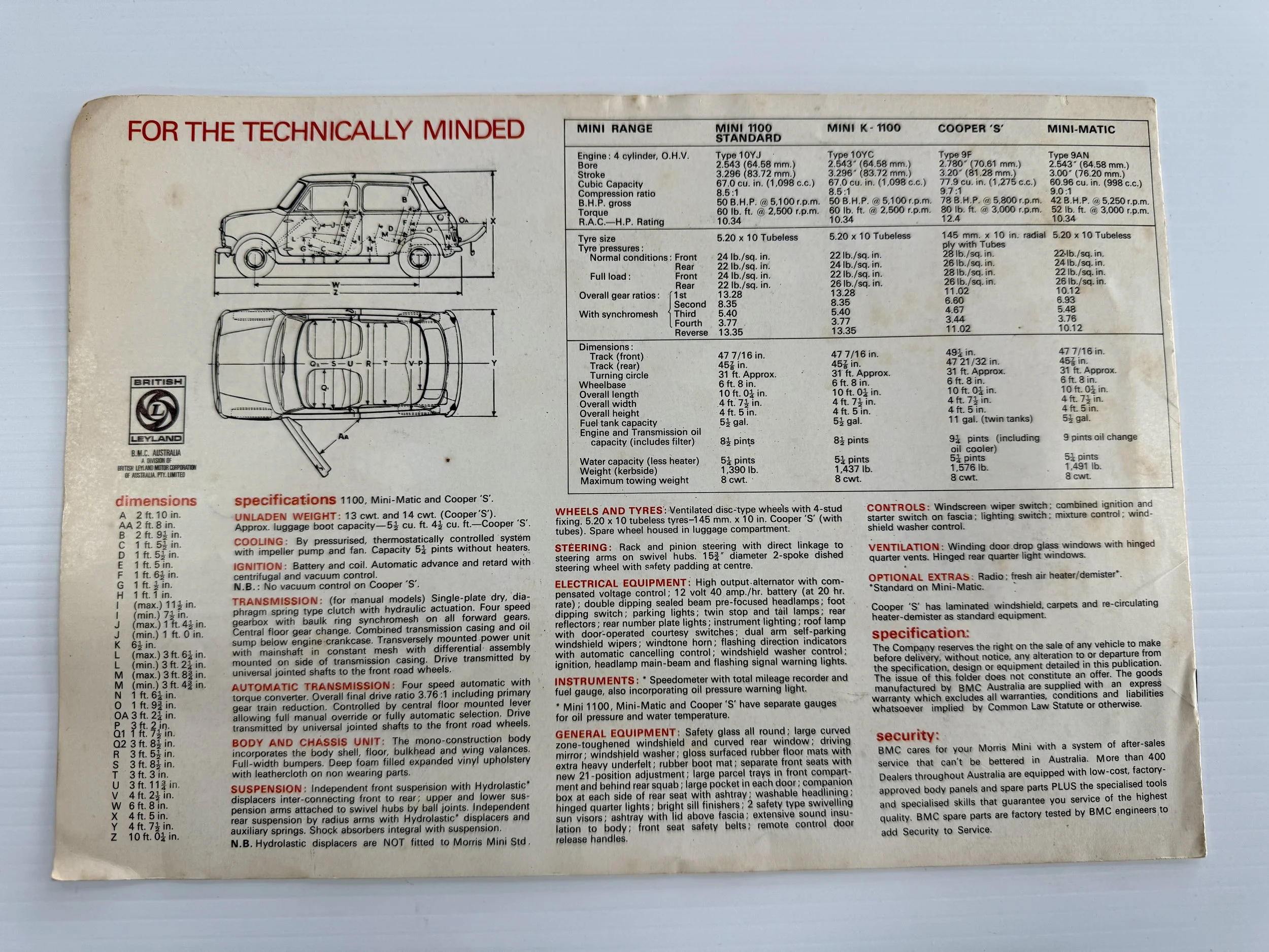 Original Australian Mini K Range Brochure (c.1969) – Rare.