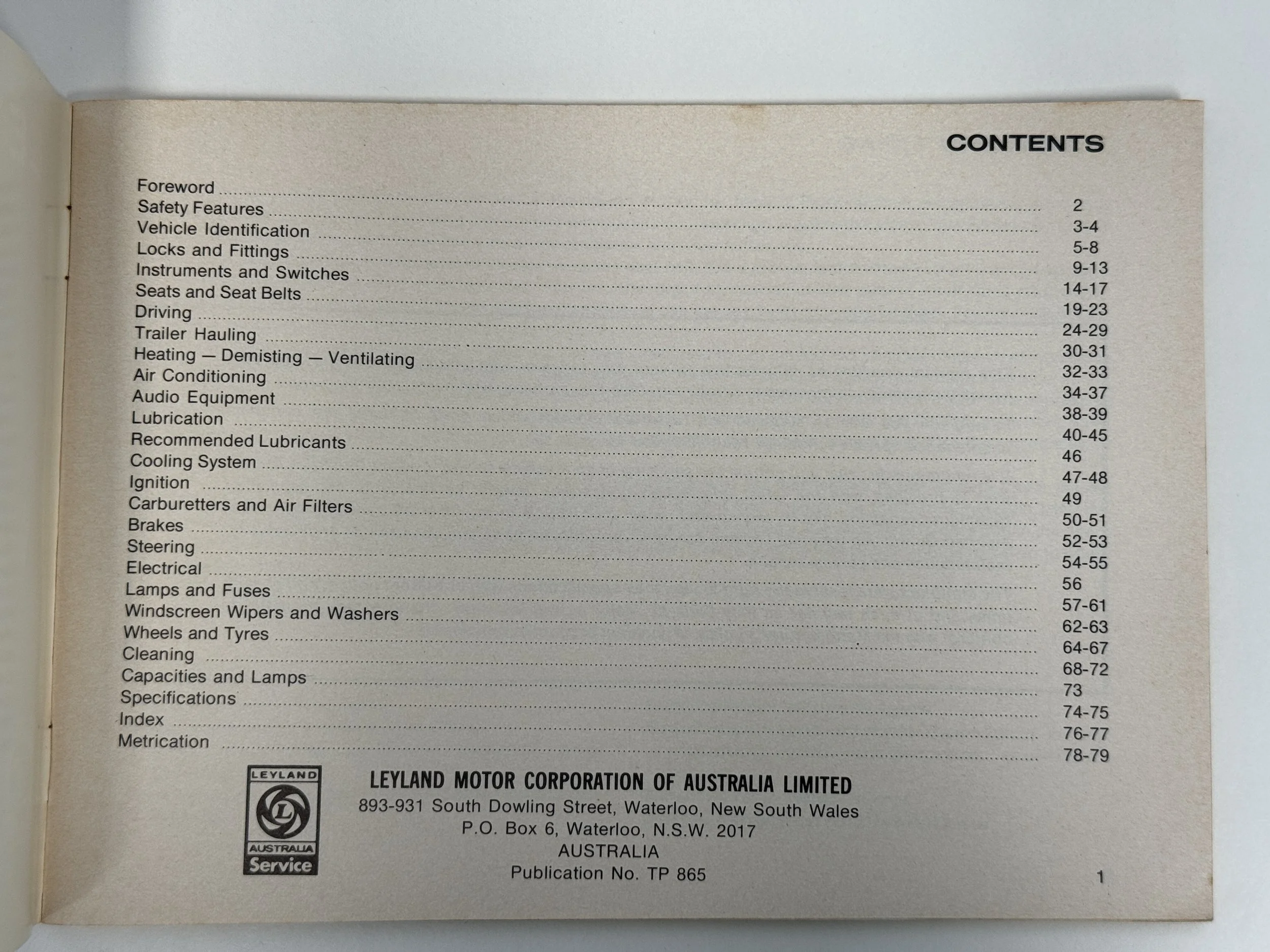This is the original owner’s manual for the unreleased Leyland Force 7V Coupé — a model of which only 10 pre-production cars were built in Australia.