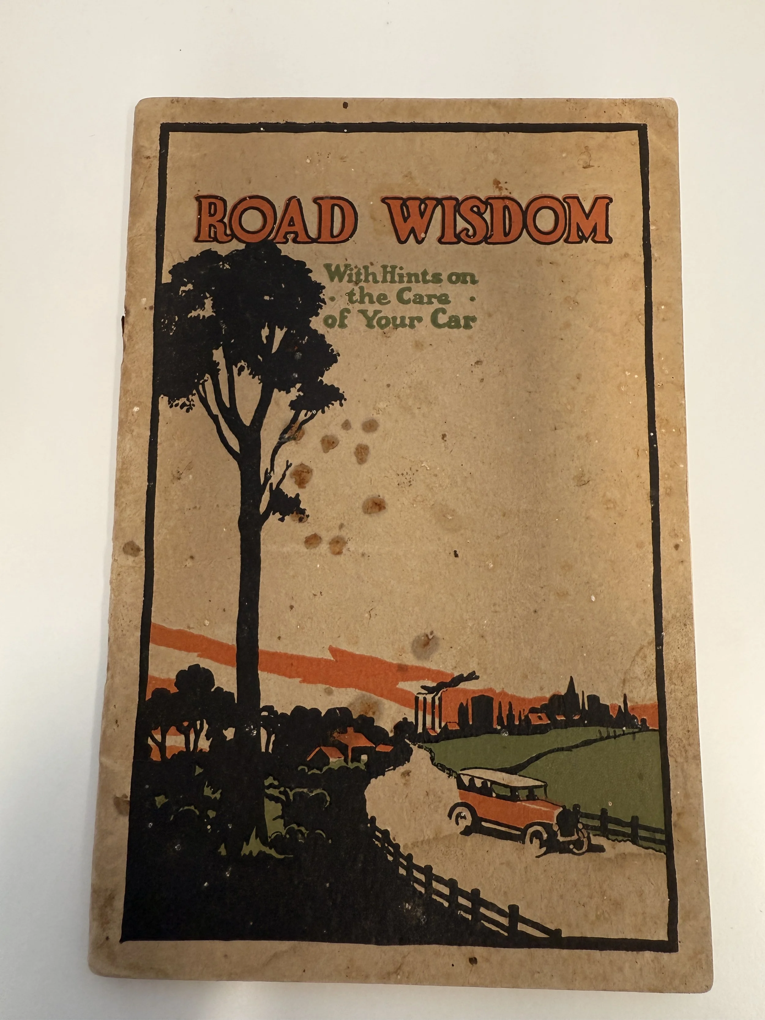 Original 1920s Road Wisdom – With Hints on the Care of Your Car booklet. This 64-page publication offers period advice on driving and vehicle maintenance from the early motoring era. A fascinating glimpse into automotive history — ideal for collectors of vintage motoring literature.