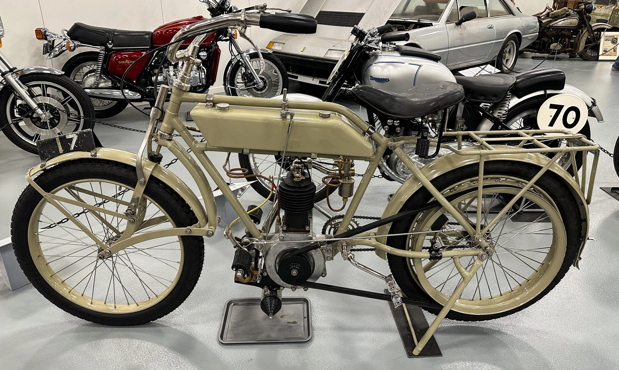The motorcycle has received an extensive restoration to original condition and today remains in full working order, still with the original ‘17’ numberplate it first wore in 1908.