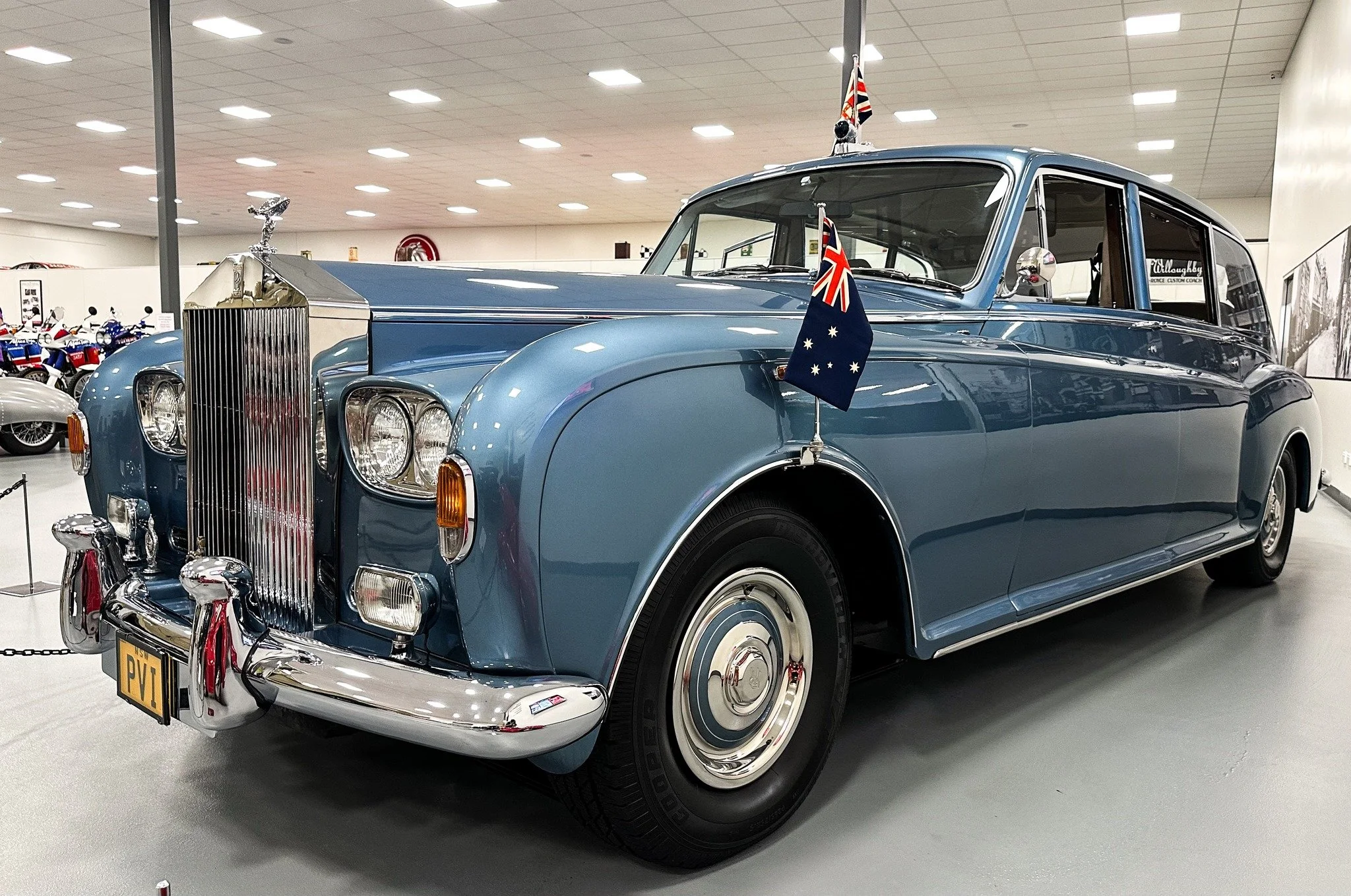 The Rolls-Royce Phantom VI was produced from 1968 to 1990, a total of 374 being produced. It was the final Rolls-Royce with a separate chassis, and most were used by diplomats and heads of state, notably by Her Majesty, Queen Elizabeth II. The example on display was delivered new to the government of New South Wales, for use by the governor at the time, Sir Roden Cutler. It features coachwork by Mulliner Park-Ward, with notable inclusions such as a glass partition, an intercom system and even a cocktail bar! Roden Cutler was born in 1916, serving overseas during the Second World War and receiving the prestigious ‘Victoria Cross’, the highest award for gallantry that can be awarded in the Commonwealth armed forces. He went on to become the longest-serving Governor of New South Wales, from 1966-1981. It is believed that his longtime wife, Lady Helen Cutler chose the colour of this particular car.